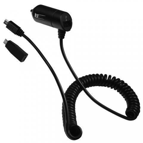 Mobia 2.1A tehokas autolaturi sekä USB että MicroUSB liittimellä, eli voit ladata kahta laitetta samanaikaisesti tällä laturilla.