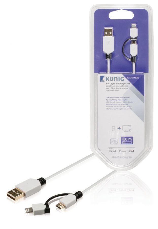 Synkronointi- ja latauskaapeli USB Micro B -urosliitin – A-urosliitin + 8-nastainen Lightning-urosliitin 1 00 m valkoinen… Lue lisää »