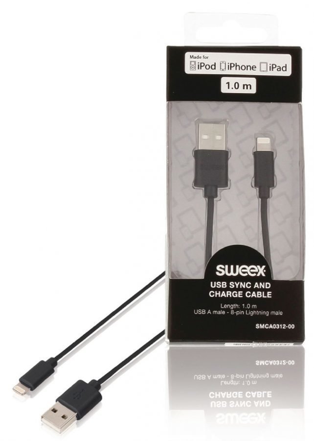 USB-kaapeli synkronointiin ja lataukseen USB A -urosliitin – 8-nastainen Lightning-urosliitin 1 00 m musta… Lue lisää »