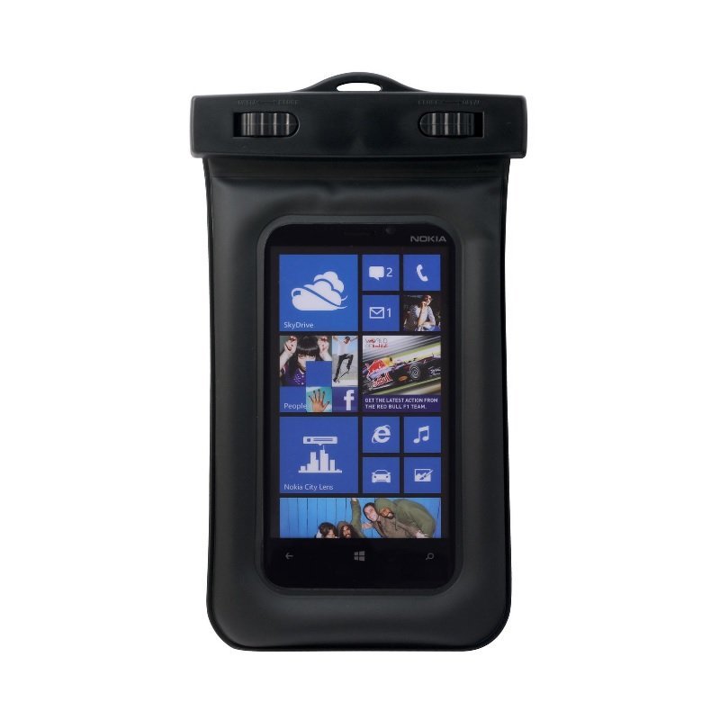Lisävaruste veneilijöille, vesipedoille, kalastajille tai rantalomalla viihtyville! Puhelimesi kosketusnäyttö on normaalisti käytettävissä erikoismuovista valmistetun pussin läpi. Vedenkestävyys jopa 20 metriin asti. Sisältää kanto- ja kaulahihnan. IPX8-Vedenpitävyysluokitus. Max. 5,5″ puhelimille.